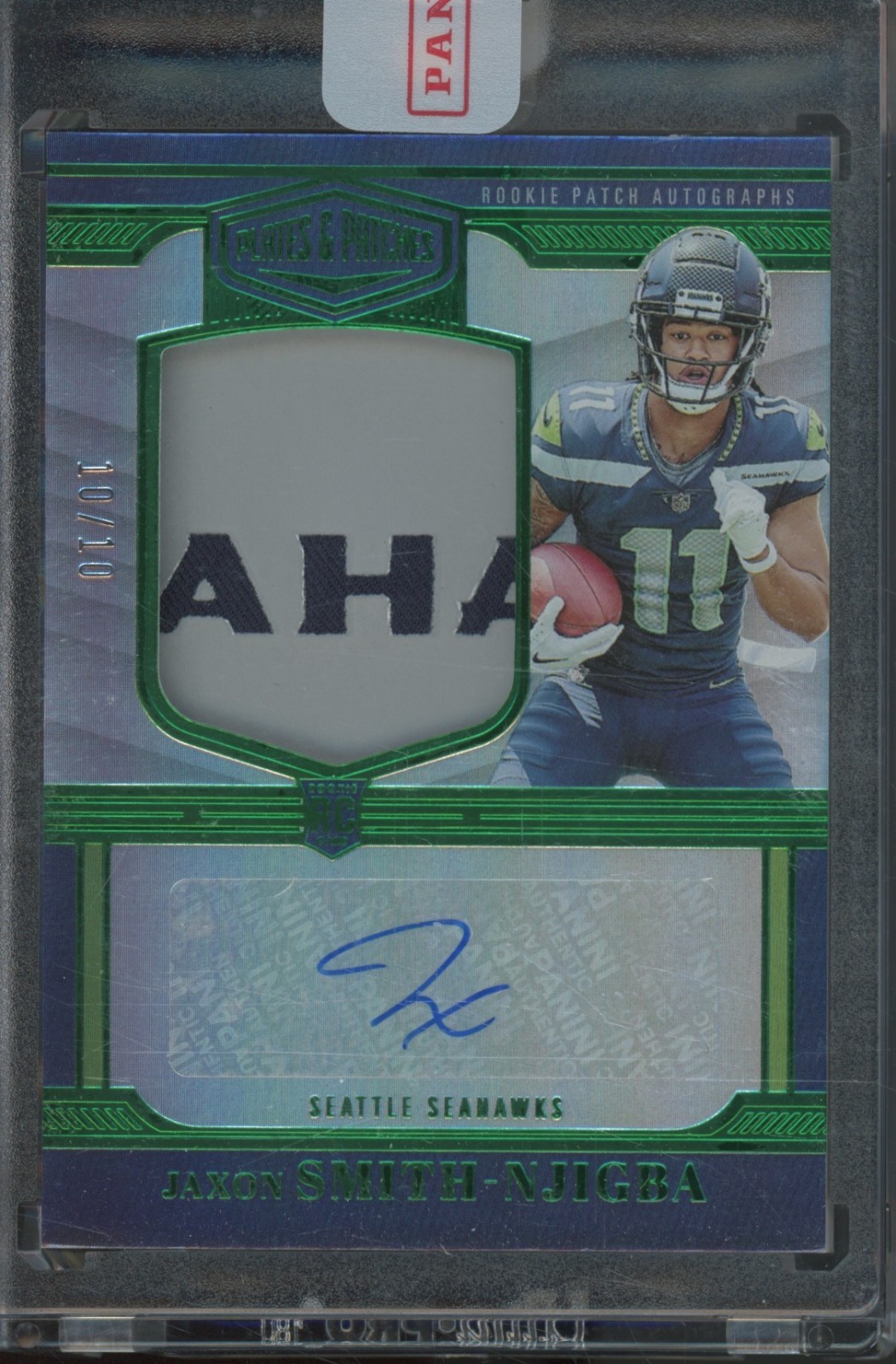 2023 Panini Plates & Patches Green Jaxon Smith Njigba 10/10 Auto Jersey RC
