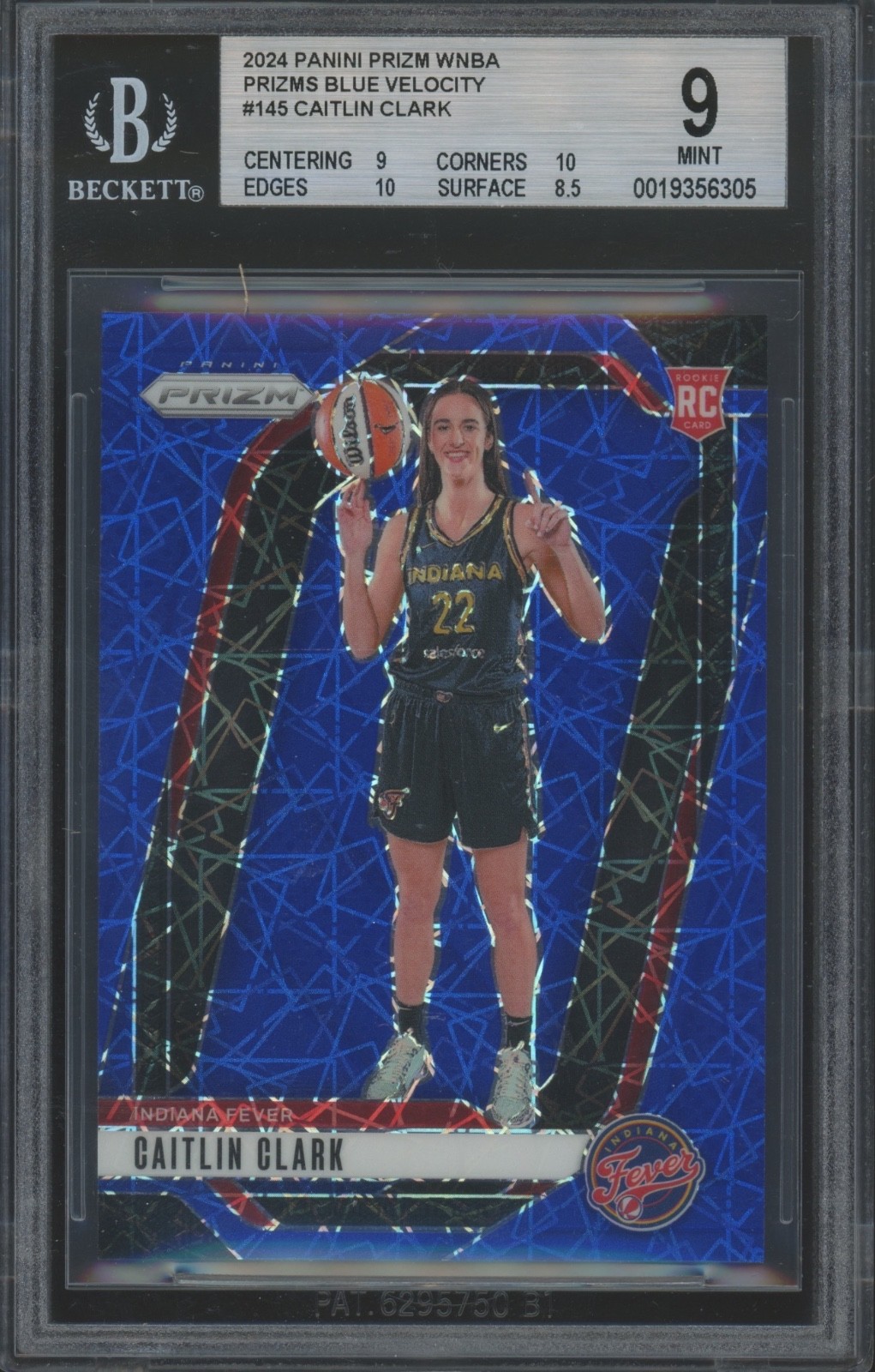 2024 Panini Prizm WNBA Blue Velocity #145 Caitlin Clark RC Rookie Mint BGS 9